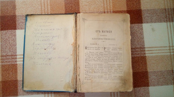 Это Евангелие. Видно, что книга очень старая, может кто-нибудь поможет определить, какого она года?
