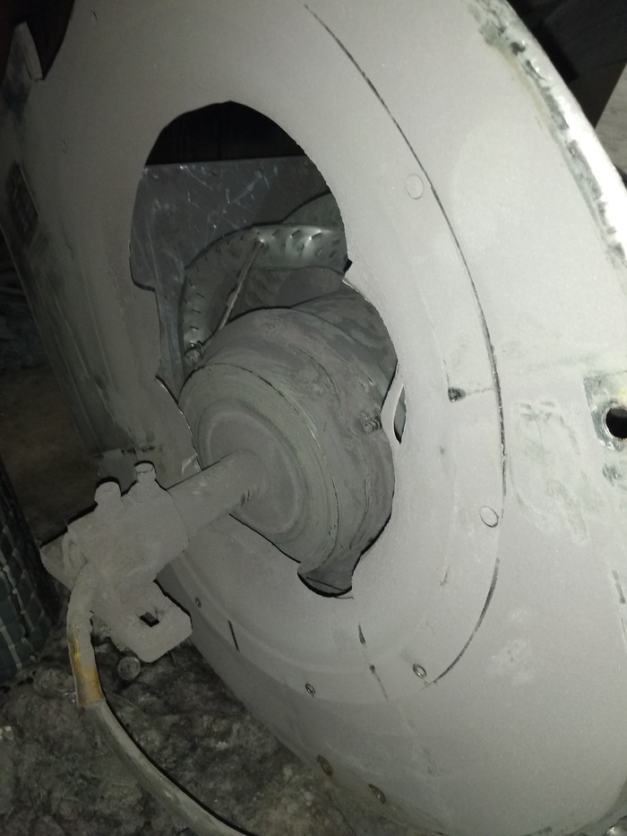 Извиняюсь, за свой французский - распидорасило его так, что разнесло всё к хуям. Даже опорная рама сломалась. На фото видно, сколько опыла на лопастях. Он, говорят, полгода вибрировал вибрировал, и вдруг, неожиданно, такое... Реально, смотрят на меня, и не понимают, почему так случилось... Рука-лицо...
