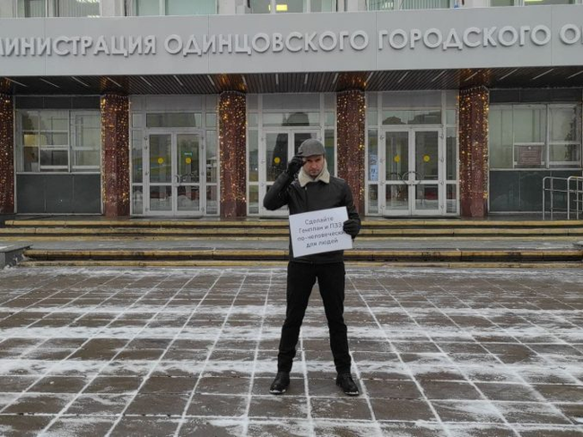Общественник Георгий Городецкий на пикете у Администрации Одинцово против фальсификаций в Генеральном плане Одинцовского городского округа