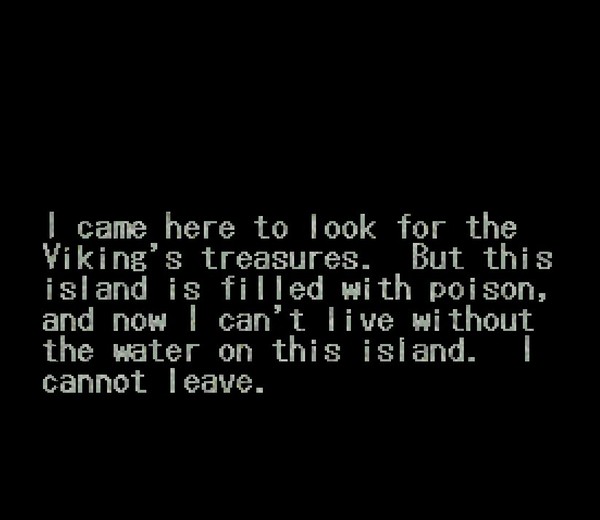 Кроме того, тут впервые появились NPC. Нет, они, конечно, были и в первой части, но ума у них хватало только на "Я торговец", "Принеси мне то-то", "Убей того-то", "Спасибо, что убил того-то, получи награду". Тут же мы получаем от практически каждого непися 3-4 экрана текста, содержащего как ценную информацию о нашей миссии, так и сведения об особенностях того или иного монстра, возможные подсказки о расположении секретки, или просто болтовню, помогающую лучше понять устройство мира, в котором происходит игра. И да, они могут врать. Доверяй, но проверяй. Читать интересно, пролистывать вредно - можно пропустить важную инфу. Рыбак со скриншота (первый встреченный мной NPC) рад поведать нам что привело его на остров: