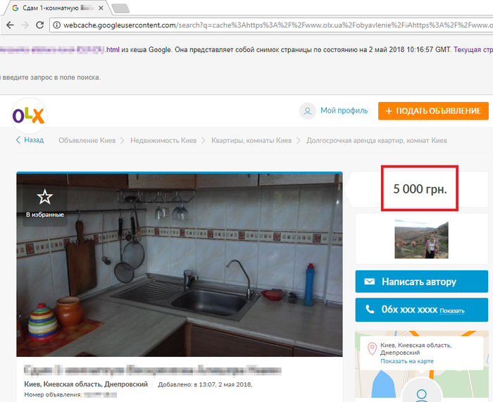 Ещё один лайфхак. Чтобы удостовериться в том, что стоимость, указанная в объявлении, не была завышена, в Google Chrome достаточно перед адресом объявления (https://www.olx.ua/obyavlenie/…) дописать «cache:» (без кавычек). Если объявлению несколько дней, оно может быть сохранено в кэше Google. В таком случае вам откроется предыдущая версия объявления, где может быть указана другая цена. Кстати, может быть и противоположная ситуация, когда предыдущая цена была больше, а сейчас стала меньше. Это также следует учитывать: