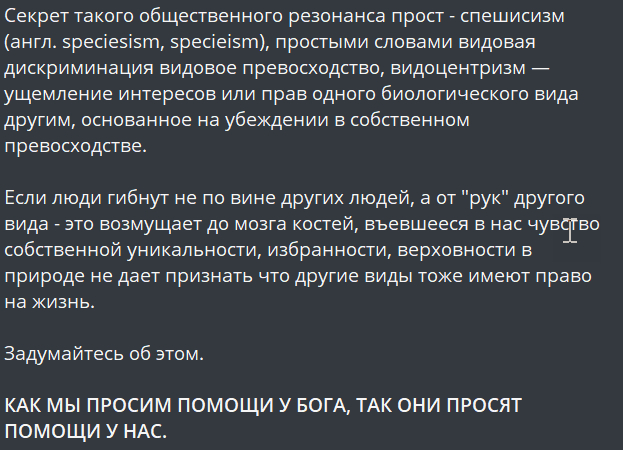 В ТГ и в ВК радикальные зоозащитники (в простонародье просто - зоошизики) стали активно распространять пост следующего содержания: