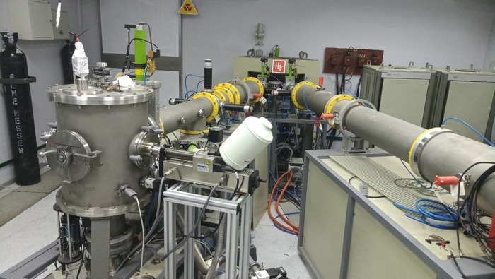 Ускорительный комплекс на базе ускорителя Ван де Граафа HVEE 2500AN, запущенный мной в 2018г в Калининграде. Этот старичок был сконструирован голландской фирмой и собран в Москве аж в 1989г. Простояв без работы 20лет, был перевезён в славный город Калининград, где и получил вторую жизнь. На фото видны сепарирующий магнит и 2 вакуумные линии: линия аналитики (RBS, ERDA) и линия модификации (ионная имплантация)