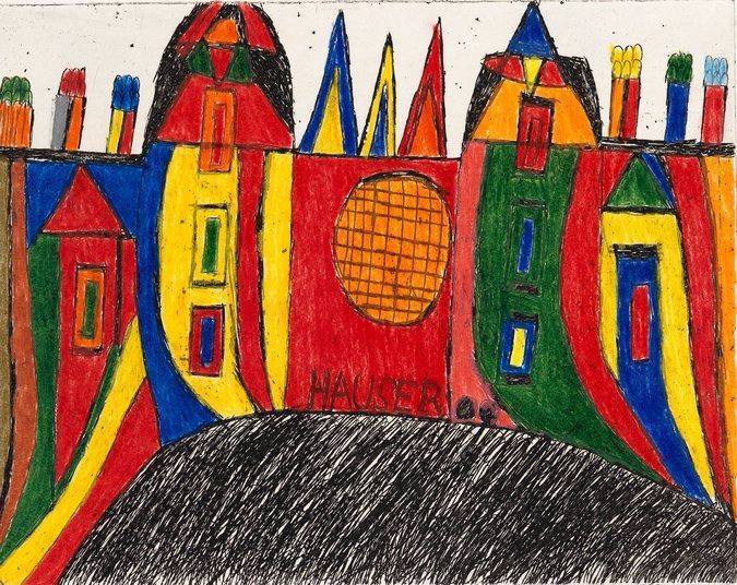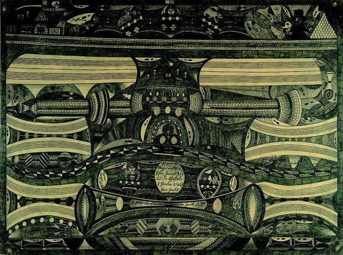 Юлиус Клингебиль (1904-1965) начал рисовать во время своего пребывания в психиатрической клинике в Гёттингене. С 1951 по 1961 год он расписывал стены своей комнаты.