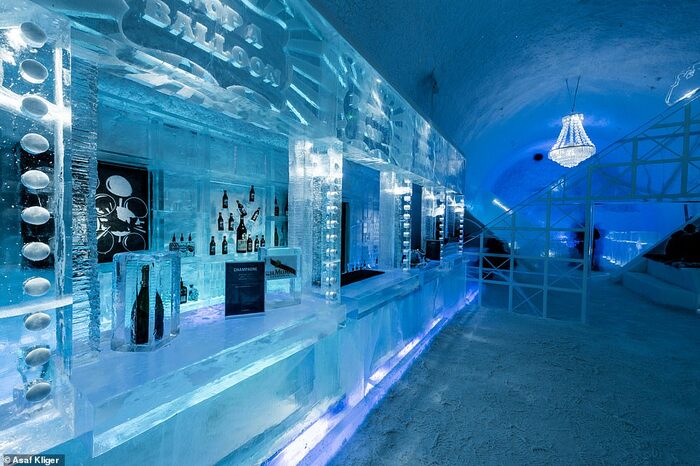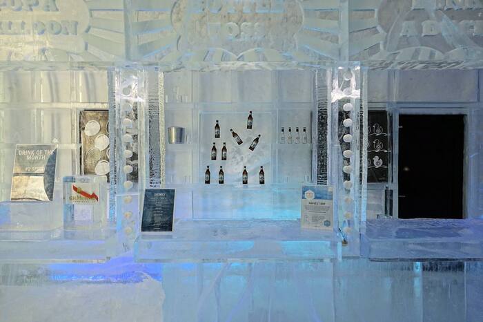 Помимо гостиничных номеров, в здании-морозильнике находится большой бар – Icebar. Каждая стойка, стол и стул здесь сделаны из замороженной воды. Бутылки и напитки в Icebar обычные, но, конечно же, их подают в стаканах изо льда. После этого можно разбить стакан о стену, не испытывая ни малейшего угрызения совести.