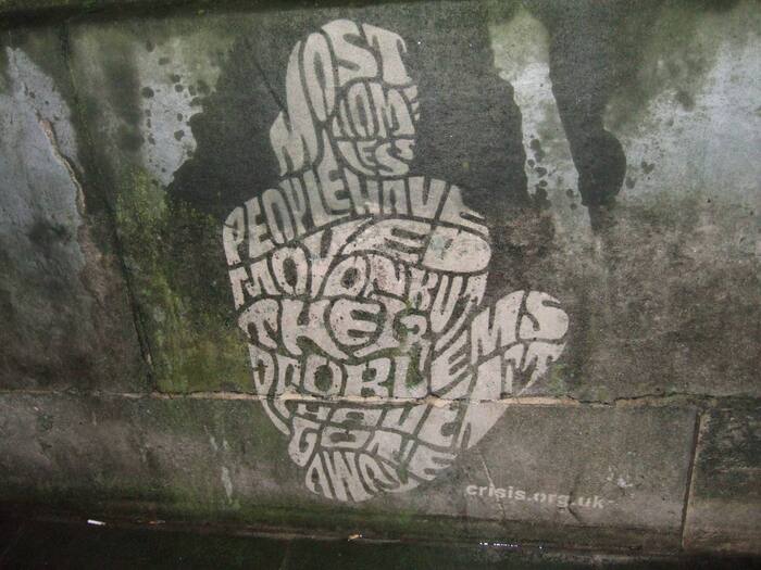 Одним из ярких примеров является работа Томаса Куинна, который использовал разрозненные буквы, нанесенные на стены, для создания фразы Face reality as it is («Встречайте реальность такой, какая она есть»). Только с определенного ракурса можно увидеть текст в его целостном виде.