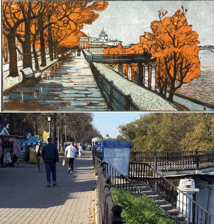 Коллажи: линогравюры С. А. Глушкова | фото Ярославля