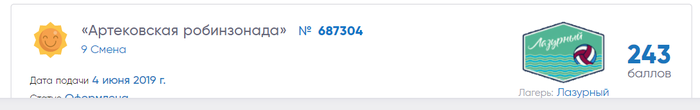 За 10 дней, если Вы согласились путевка приобретает статус оформлена, а за 3 дня вам высветится лагерь. И все Артек ждет Вас!