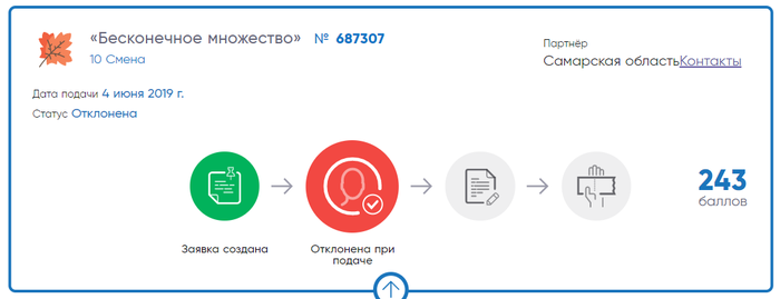 Если в итоге вы не проходите по рейтингу, то у вас показывает статус отклонена.