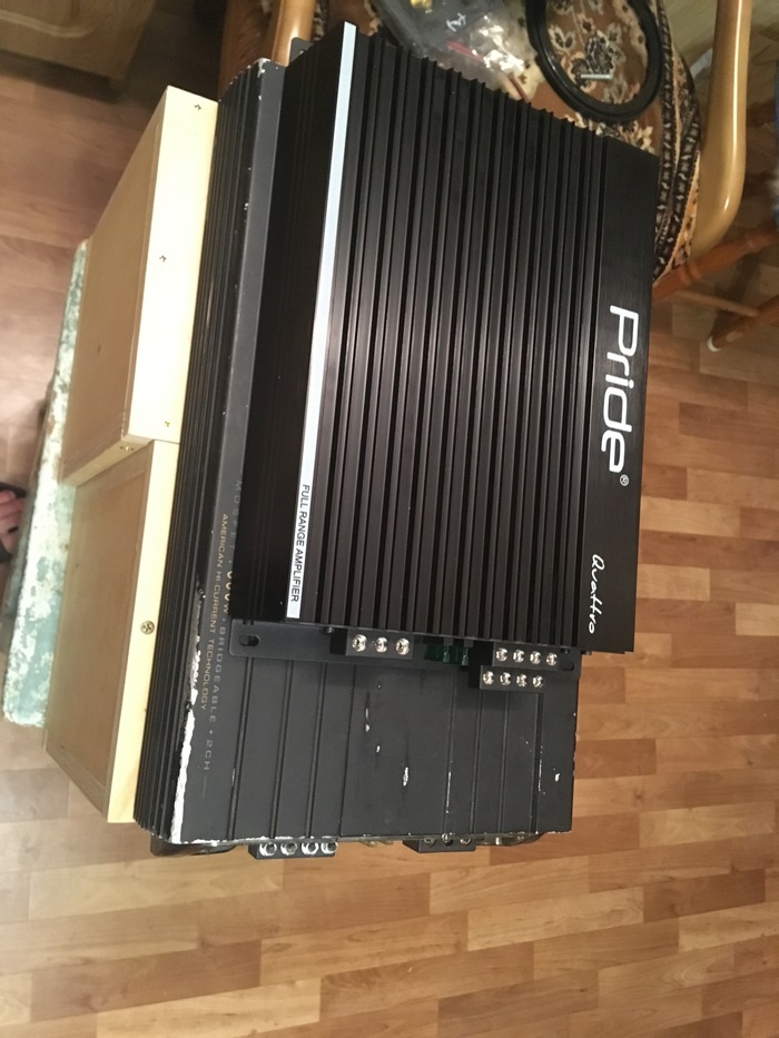 А раз так, то нужен новый усилитель, причем обязательно на 4 канала, с адекватными фильтрами для отдельной настройки ВЧ динамика и мидбаса. Как выяснилось вариантов то и не особо много, один лишь pride quattro с фильтрами на каждую полосу. Заказываем вместе с Y-тюльпанами и акустическим кабелем на вторую полосу. Так же не забываем про новые терминалы, так как выводов из колонки теперь 4.