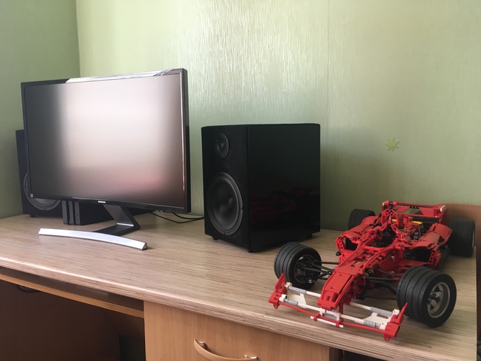 На этом всё. Вот такая не очень бюджетная вышла аудиосистема. Колонки уже пол года не перестают радовать. Алькантара без проблем отряхивается от пыли. Стоило всё как пассивные колонки того же типоразмера/класса в магазине.