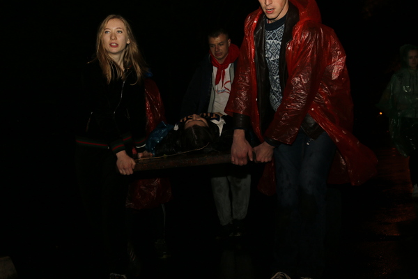 Ночное ориентирование: конкурса в программе не было, сюрприз, усугублённый продолжившимся ночью дождём. Ночью, когда все легли спать, в лесочке рядом с лагерем уложили 14 "пострадавших". Команды были подняты по тревоге (сирены + их физически из кроватей вытряхивали при необходимости), получили планы местности с примерным описанием района поиска. Задача - найти пострадавшего, оказать первую помощь и транспортировать в лагерь. Я, как выяснилось чуть позднее, транспортировал в лагерь гусеницу на собственной щеке =(