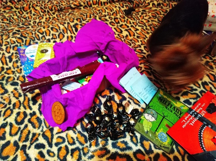 Поскольку ты добавила свой ник в посылку, то я думаю можно его выкладывать тут не опасаясь : @Nicksess, спасибо тебе огромное за подарок.Хоть он и запоздал, но ничего! Будет на Старый Новый год! Адрес твой я пожалуй сохраню в целях ̶с̶т̶а̶л̶к̶и̶н̶г̶а̶ отправить тебе посылку в дальнейшем на какое нибудь празднество!