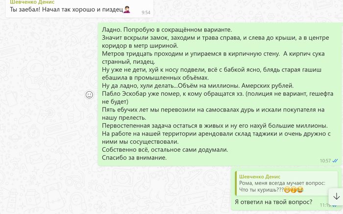 Про себя думаю: Ага, конечно, поесть, пива тебе хочется, но прикинув как мне хуёво с похмелья, без вопросов даю ему сотку. Выходит из лавки с пирожками, присаживается на остановке и давай их точить. Тут подъехал дружбан и я идя в машину сунул ему ещё сотку. На пиво.