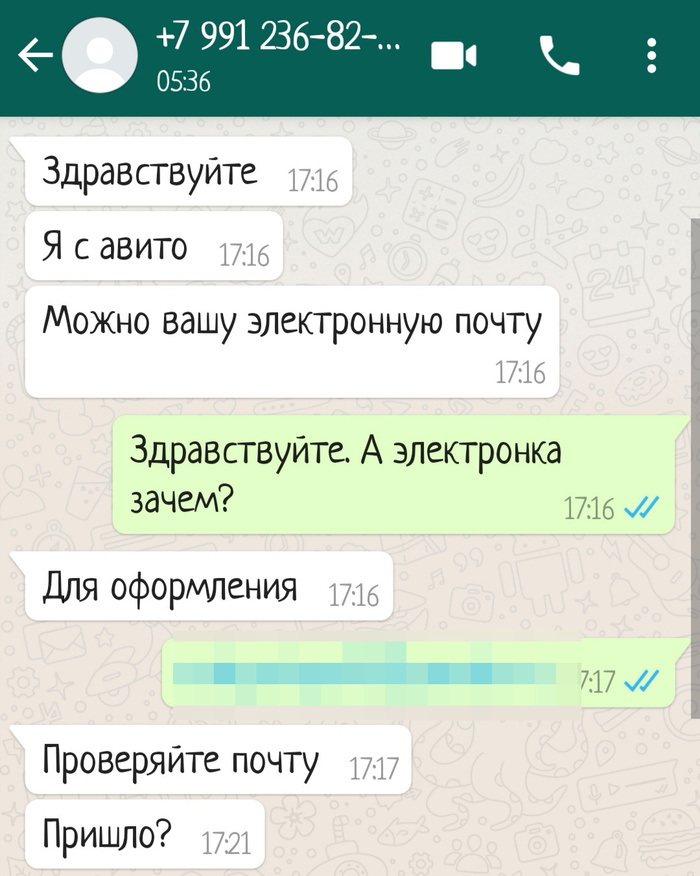 Ну, думаю, хочет созвониться и обсудить условия сделки... Но... Пришло сообщение на вотсап.