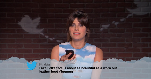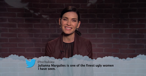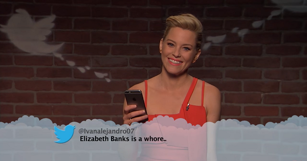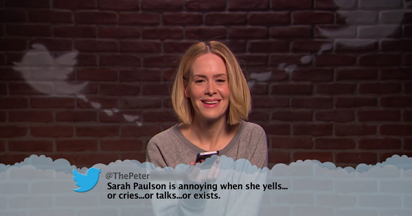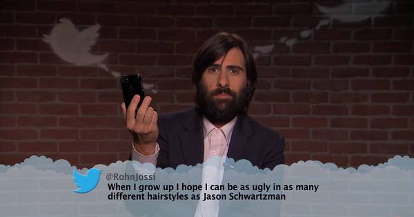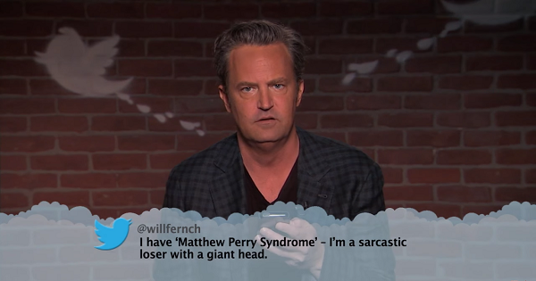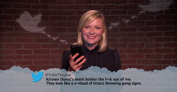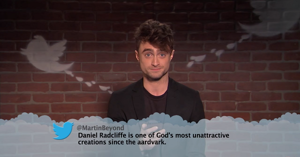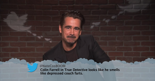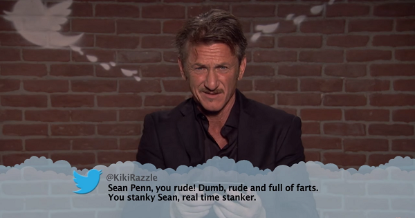 Телеведущий Джимми Киммел придумал новое развлечение: снимать на камеру и показывать зрителям, как звезды читают оскорбительные твиты о себе вслух. Шон Пенн, Дэниел Рэдклифф, Кирстен Данст, Джулианна Маргулис, Колин Фаррелл, Мэтью Перри, Джейсон Шварцман и другие — молодцом.