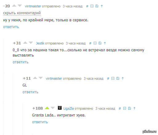 5 hacker26 Главное не спалиться 11 лет назад Из поста: http://pikabu.ru/story/_1839181 Комментарии Gl Лада Гранта Заниженная тачка