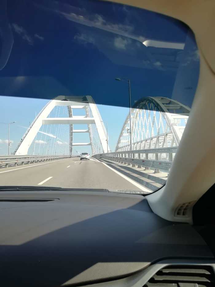 На второй день начала накапливаться усталость, положение усуглублялось тем, что сменного водителя у меня не было, в отличии от первой машины. На М4 мы выехали около 23:00 местного времени. Проехали платный участок, попытались доехать до подъездов к Крымскому мосту, но не вышло. очень сильно устали и решили отдохнуть прямо в машинах. Остановились на парковке какой-то гостиницы и покимарили пару часов. Проснулись в 6:00 утра и в предвкушении фантастического зрелища- ещё бы своими глазами увидеть самый дорогой и длинный мост в России-матушке, рванули на юг!