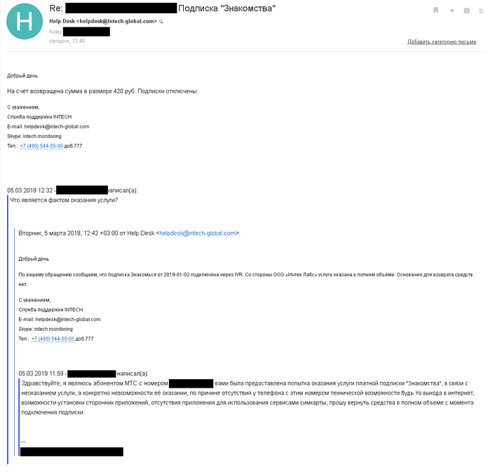 Очередной развод от МТС(его партнеров) и возврат средств.