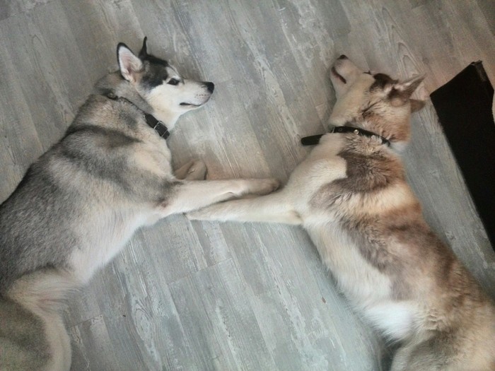На следующий день, дабы избавиться от запаха "хлева", решила ее искупать. К слову сказать, почти полуторачасовое купание она перенесла стойко, не выла и не крутилась, лишь один раз попыталась сбежать из душевой, моя бы так не смогла. Собаки подружились, Акира от неё ни на шаг, делится едой и игрушками, видимо не верит своему счастью.