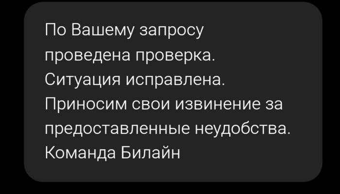 На утро следующего дня, мне звонит специалист (как я думал), и говорит что все разобрались, принесли извинения (ага, это примерно то что мне было нужно, за 1,5 часа в офисе, неоказание услуг и нервы), и заказ отменён, деньги поступят в ближайшее время (спойлер: деньги не поступили до сих пор). Ну думаю ладно, а что мне делать не с моим тарифом? Говорит у нее лапки, звоните 0611. Это оказался специалист чисто по продажам.