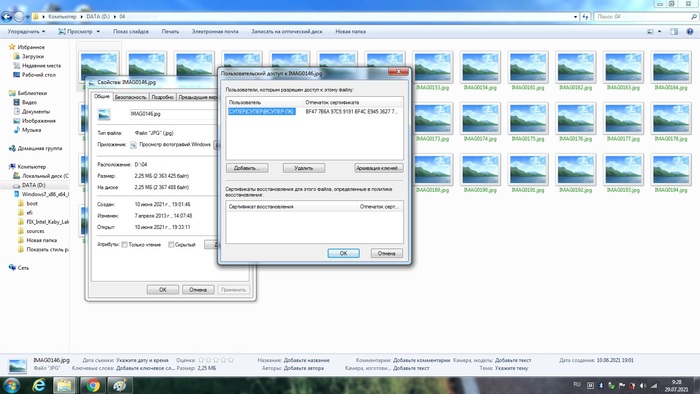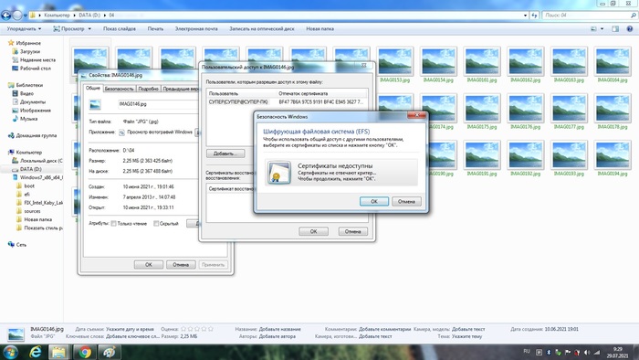 После переустановки вин7 сохраненные папки с медиа (семейные фото/видео) перестали открываться, не дает скопировать на флешку или загрузить в облако, названия файлов в папках зеленым шрифтом, превьюшек нет
