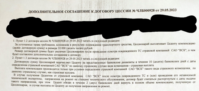 Также в договоре указана сумма к выплате мне 10000, но после оценки эта сумма соответственно изменится допником к договору на оценённую.