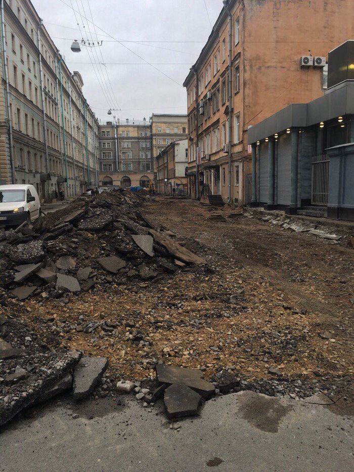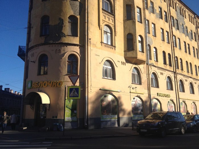 Промолчим про печальное состояние дома, сверху его загадили вывесками, наклейками. Это в Москве давно побеждены уродливые вывески. В Петербурге с этим все очень плохо. Изнутри двор заставлен вытяжками от кафе, кондиционерами и прочим. И все это было незаконно. Абсолютно всё.