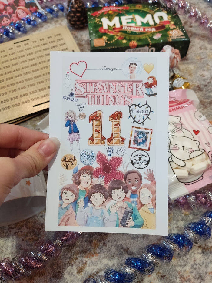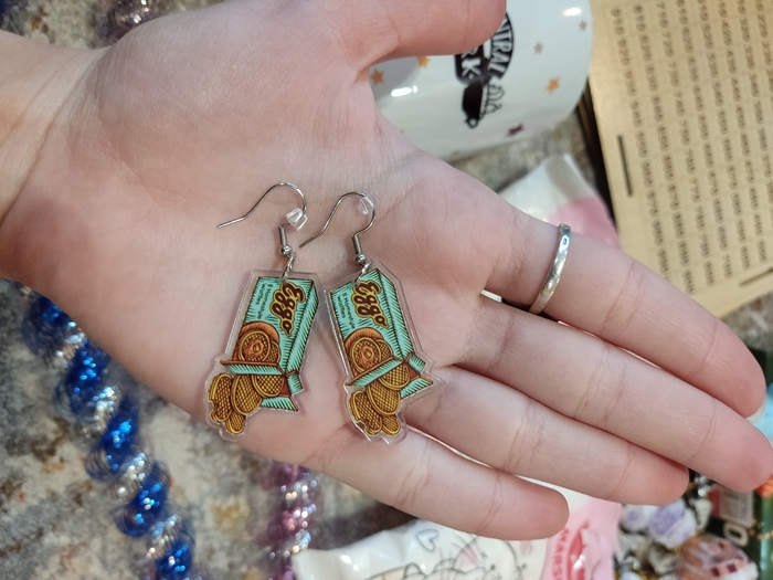 Также были очень прикольные серёжки с вафлями из сериала Очень странные дела (я указала в анкете, что это один из моих любимых сериалов). Спасибо за них большущее! Обязательно буду носить.