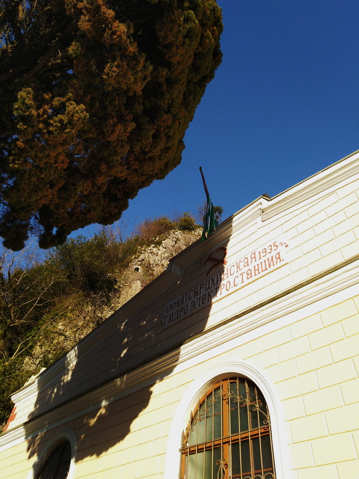 Пейзаж завершает десятиметровый водопад, искусственный и образованный местной гидроэлектростанцией. Псырцхинская ГЭС - одна из самых старинных в республике, построенная в начале ХХ века.