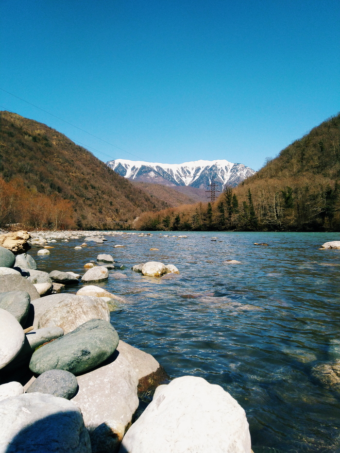 Зачаровывающий вид на бурлящую Мзымту.