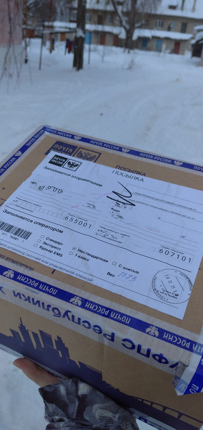 Наконец и до меня дошел подарок от моей снегурочки. Днём видела в окно как проезжала почтовая машина в наше отделение, а пару часов спустя я забрала посылочку с почты