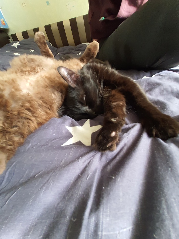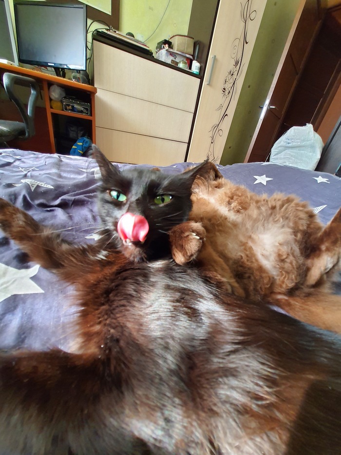 Проосыпаюсь, шерсть до сих пор дыбом, и тут приходит осознание того, что это был лишь сон, и сквозь дремоту, начинаю понимать, что палец-то, до сих пор скребет в спину..твою мать, понимаю что не сплю, опять накатывает дикий ужас, паника, холодок по коже, а палец скребет и скребет. Медленно начинаю поворачивать голову, а там стена, как и во сне, а между мной и стеной, кошка лежит, и вылизывает мне спину. Твою мать, в 30 лет, я готов был обделаться по среди ночи от ужаса.