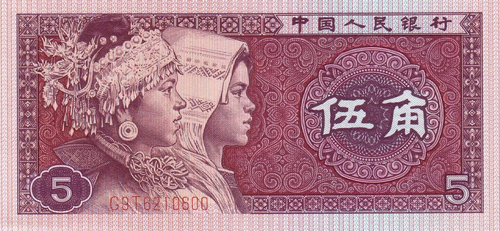 Размер: 120×55. На лицевой стороне изображение портретов двух девушек. Слева — представитель народности Буи (народ в Восточной и Юго-Восточной Азии, расселены, преимущественно, в Китае на юге провинции Гуйчжоу); справа — представитель маньчжурского народа (коренное население Маньчжурии, сейчас это Северо-Восточный Китай)