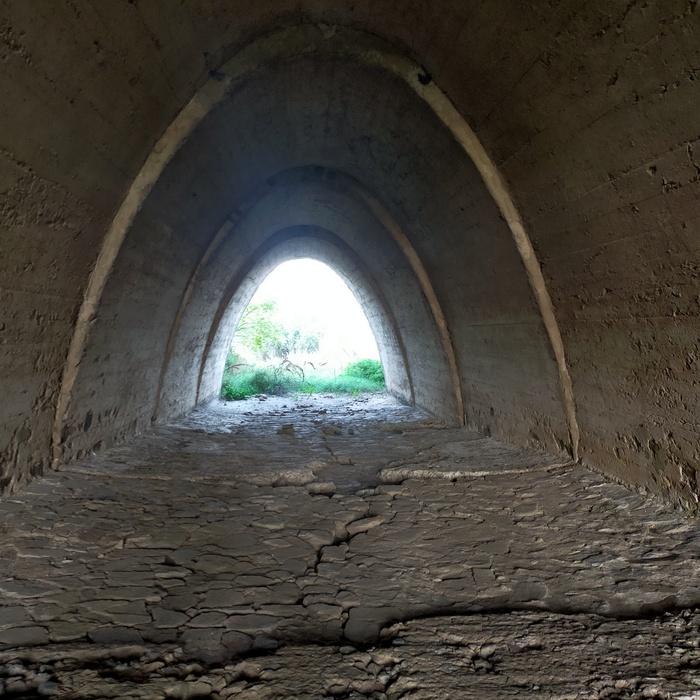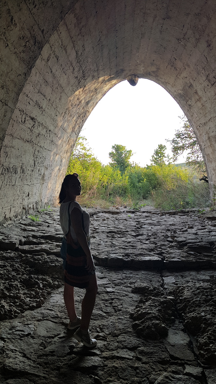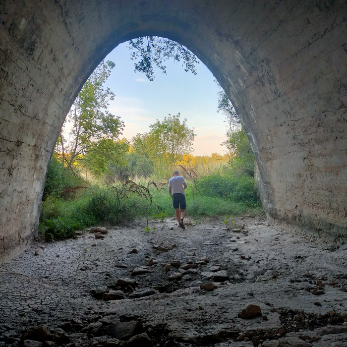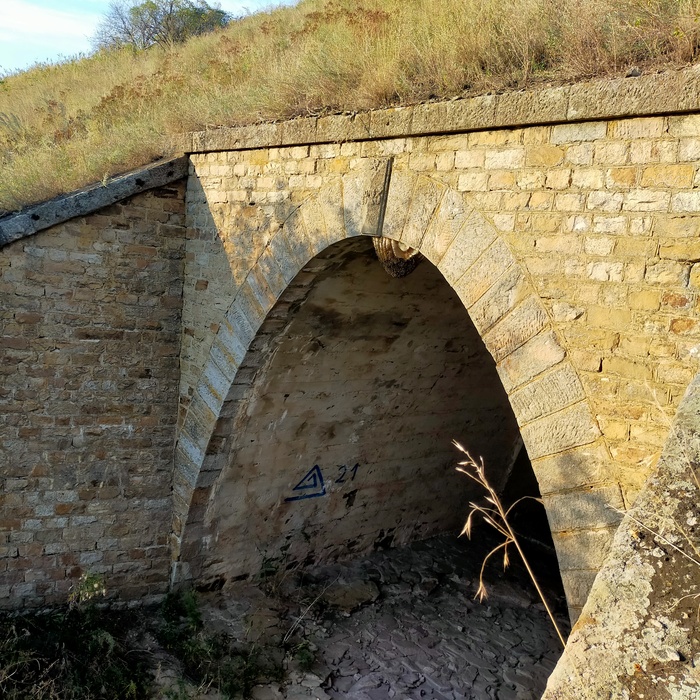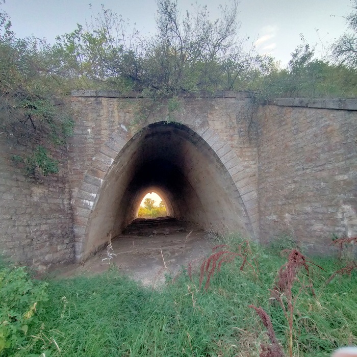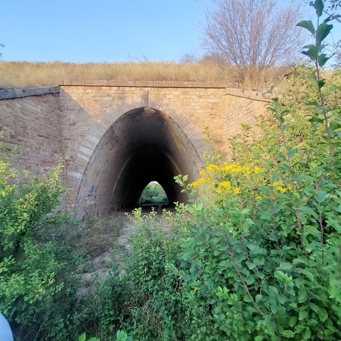 Цель нашего маленького путешествия под нами. Это каменный мост 1913 года постройки. Своего рода тоннель, предназначенный для прохода воды через насыпь в весенний период.