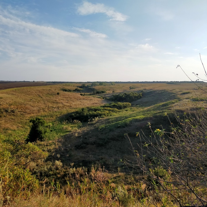 Изучили местную флору, очень удивили вышедшего из травы фазана, дождались захода светила за край оврага и потопали домой.