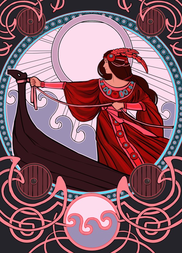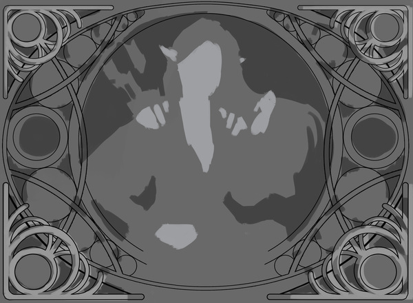 Смотрю в ч/б расположение силуэта относительно уже перерисованного узора, решаю сдвинуть правее.