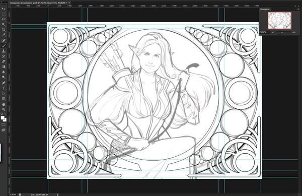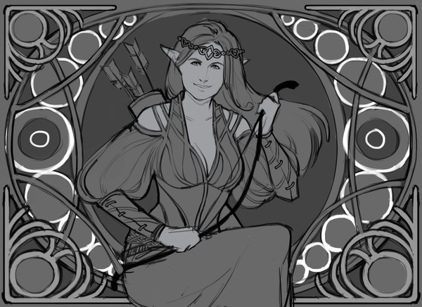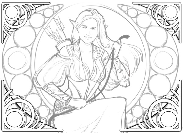 Начальный скетч. Выбираю композицию и элементы, утверждаю набросок с заказчицей.