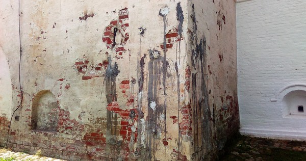 С кремлевской стеной произошло какое-то недоразумение. Что это? Здесь играли в пейнтбол?