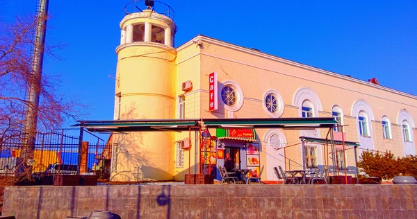 То же самое место, но с другого ракурса и в 2016 году. Примерно с той точки, где на кадре из фильма на среднем плане справа стоят шесть человек, а рядом с ними лошадь с наездником. В месте, где тень от здания заканчивается. Приглядись