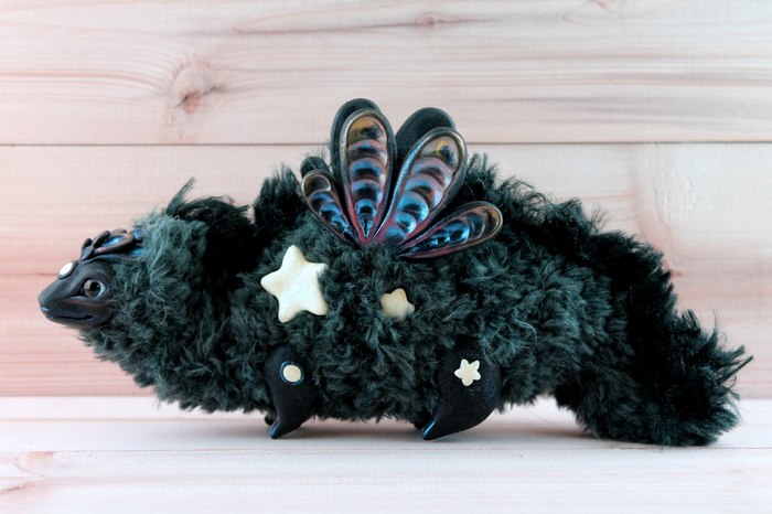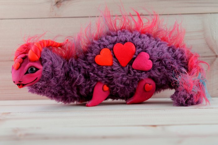 Высота около 17 см при согнутой шее, в длину с расправленным хвостом около 35 см. На проволочном каркасе. Смешанная техника вязание из фактурной пряжи + полимерная глина.Новогодняя шапочка за 10 минут ^^