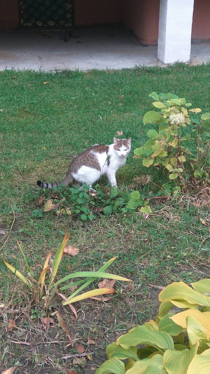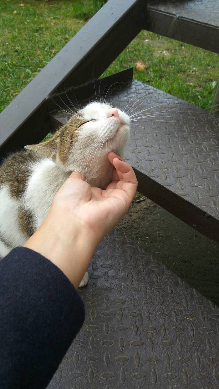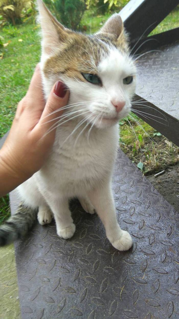Летом возле подъезда появилась кошка, постоянно лежала на лавочке, далеко никогда никуда не уходила, как будто кого-то ждала. Совсем молодая, на вид года 1.5-2, очень красивая, чистоплотная, ухоженная девочка с безумно красивыми необычными бирюзовыми глазами. Людей не боится, ластится к рукам, сразу начинает песню петь, но с характером – если достаточно, то мягко отодвинет вас лапкой)