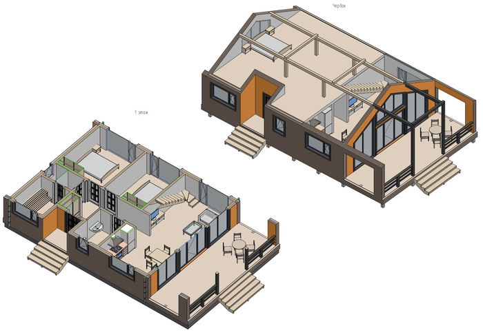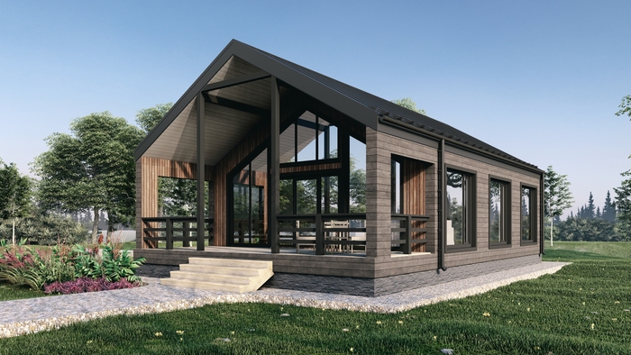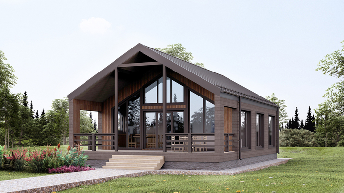 Итоговым решением стал дом с двумя спальнями, сауной и просторным «лофтом» на мансарде, где можно организовать, как еще одно спальное место, так и рабочий кабинет или игровую зону для детей.