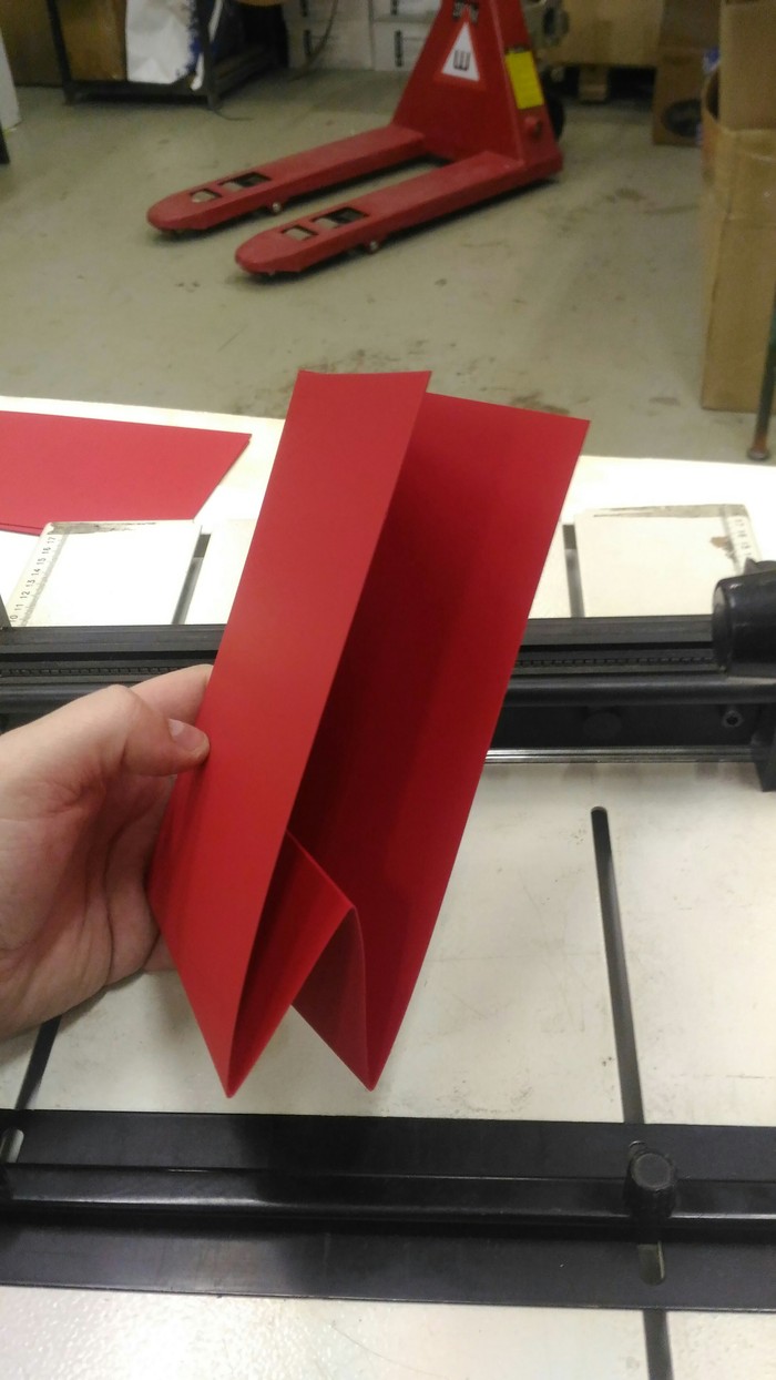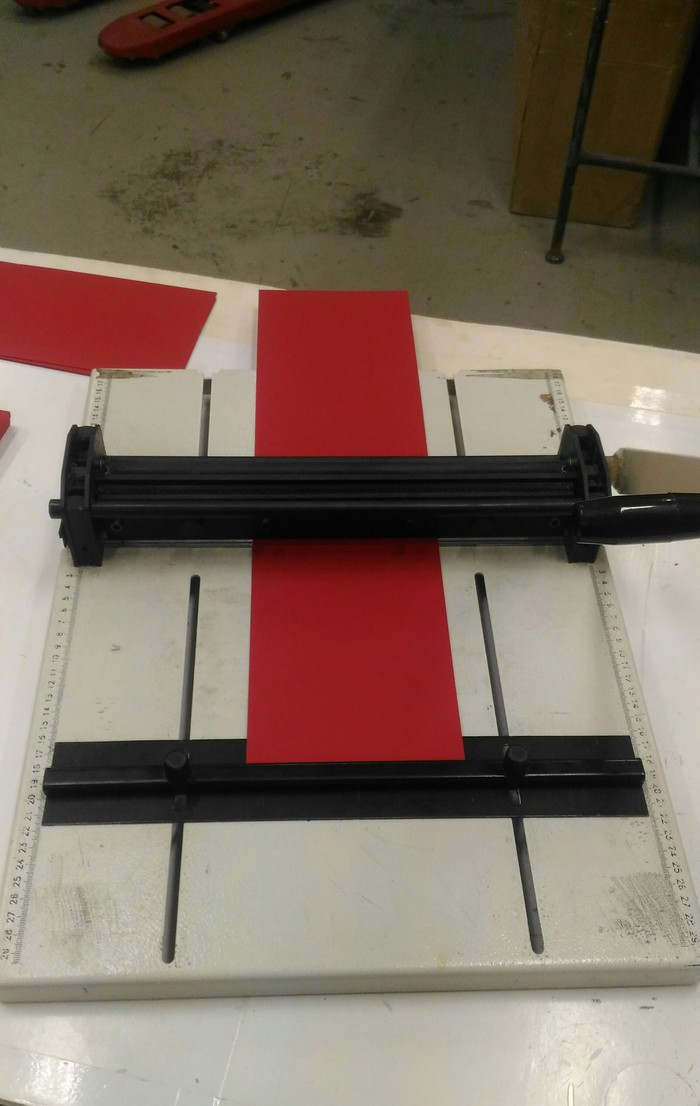 На биговальном станке делаем так называемую биговку (уплотняем бумагу в месте сгиба).