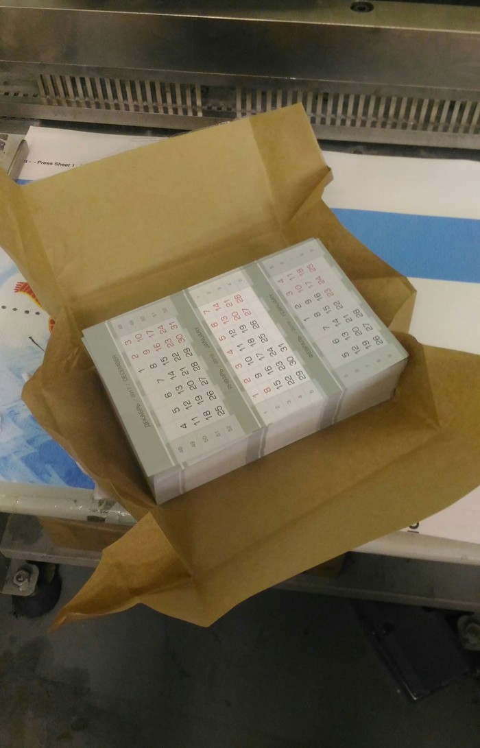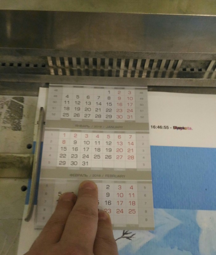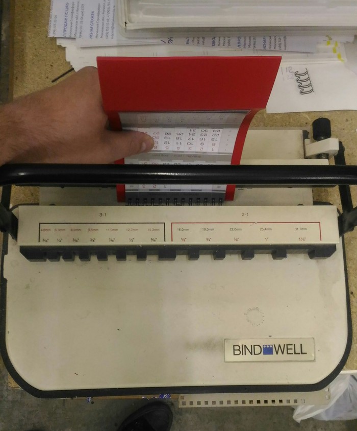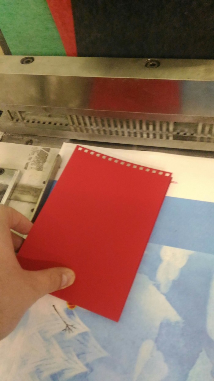 В сложенном виде мы делаем перфорацию (дырочки в месте крепления блока и ноги пружиной) и откладываем ее в сторону, либо сажаем работника на эту операцию, если у нас большой тираж.