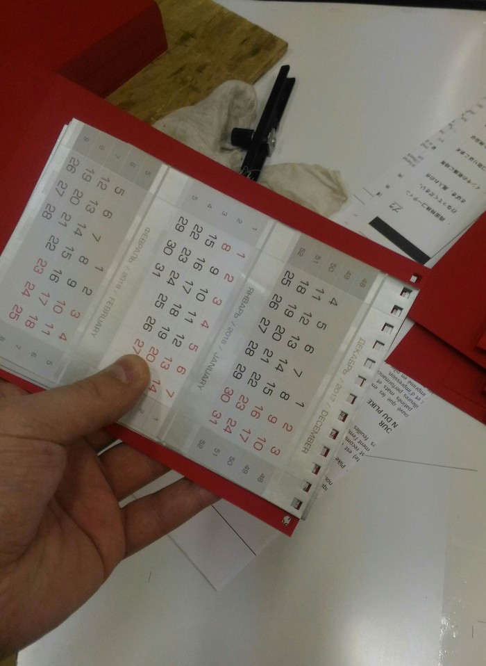 Вот такой календарик у нас должен получится! Нога у нас сделана из бумаги плайк (резиновая по тактильные ощущениям), красного цвета (для тех кто не разбирается в цветах), блок мини цвета металлик.