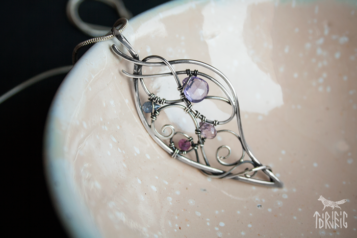 Одна из первых работ - кулон-эльфийский клинок, в котором можно увидеть лист целебного атэласа.