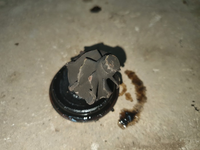 Далее я осмотрел турбину, к ней вопросов не возникло, масло не гонит, люфт осевой отсутствует и с ней все отлично.