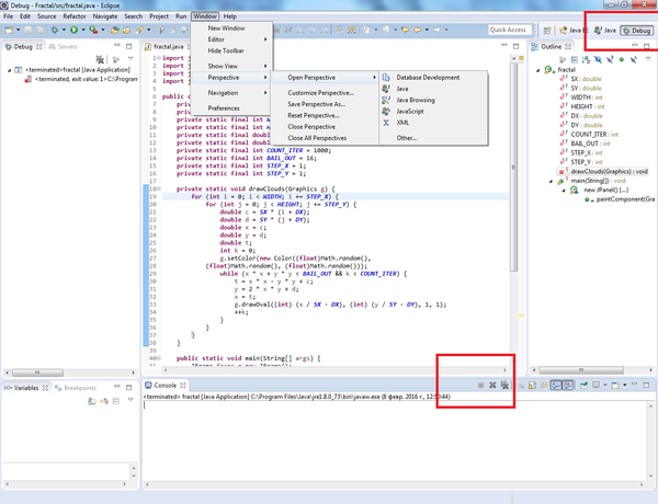 если доигрались то windows -> perspective -> open perspective -> debug там будет кнопка stop