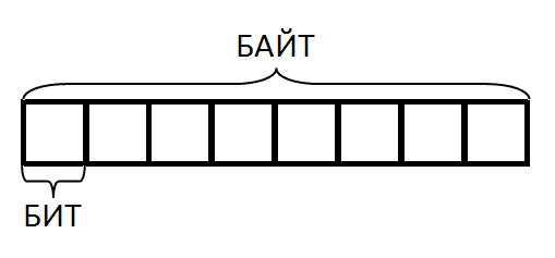 Помним, что информация в компьютере представлена единицей и ноликом? Очень похоже на азбуку морзе (только там короткий и длинный). Представим, что мы указали компьютеру выделить информацию под тип byte. Компьютер выделяет 1 байт равный 8 бит - восемь ячеек, в которые можно поместить 1 или 0 (поставить/убрать заряд).